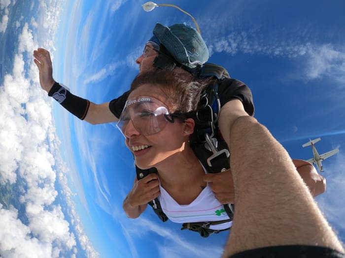 120MPH tandem skydiving adventure. Price includes all equipment!